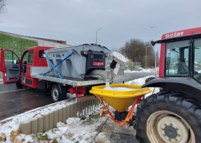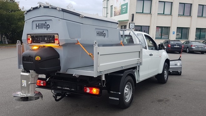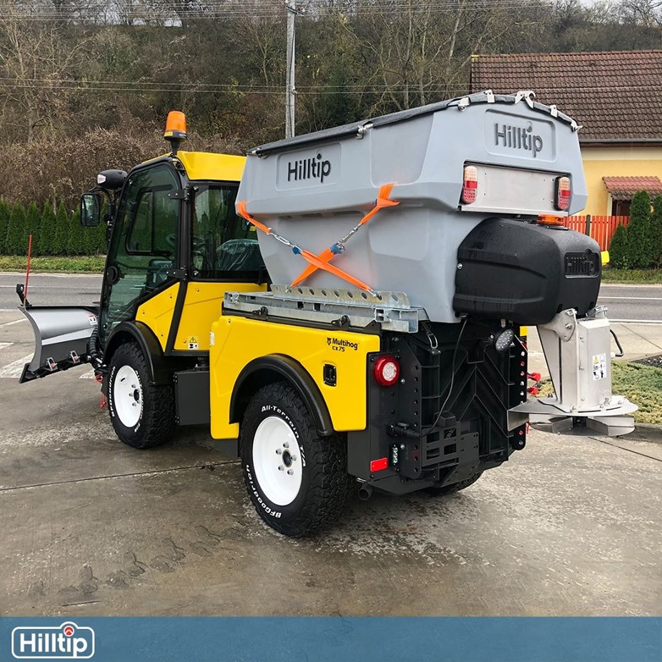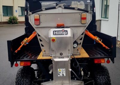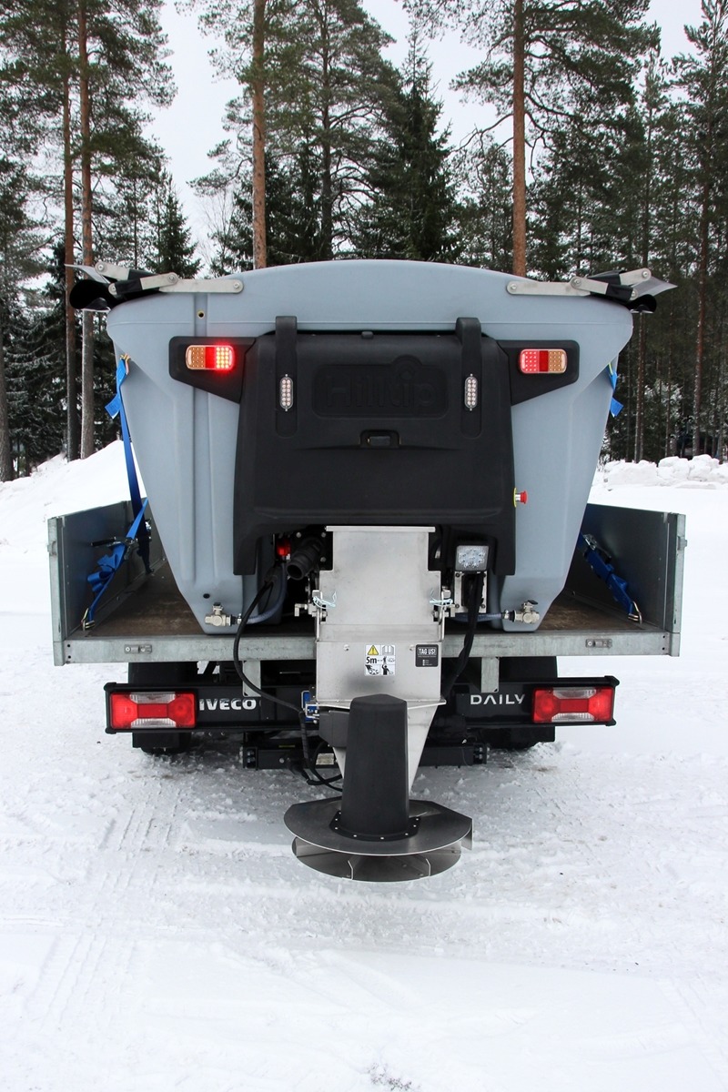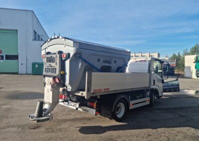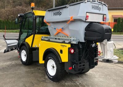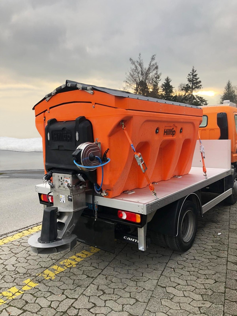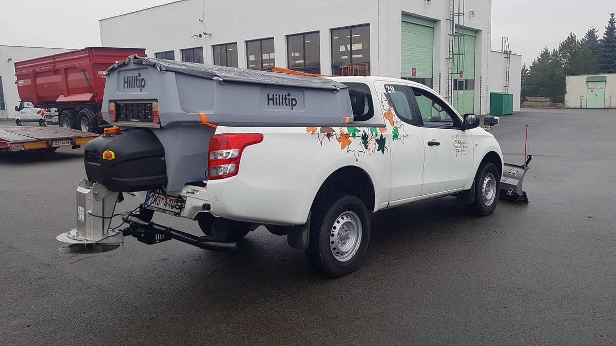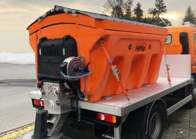 Plastové elektrické rozmetadlo s objemem 550-1100 litrů. GPS – automatická dávka posypu dle rychlosti pojezdu. Velmi efektivní sypání – značná úspora soli!