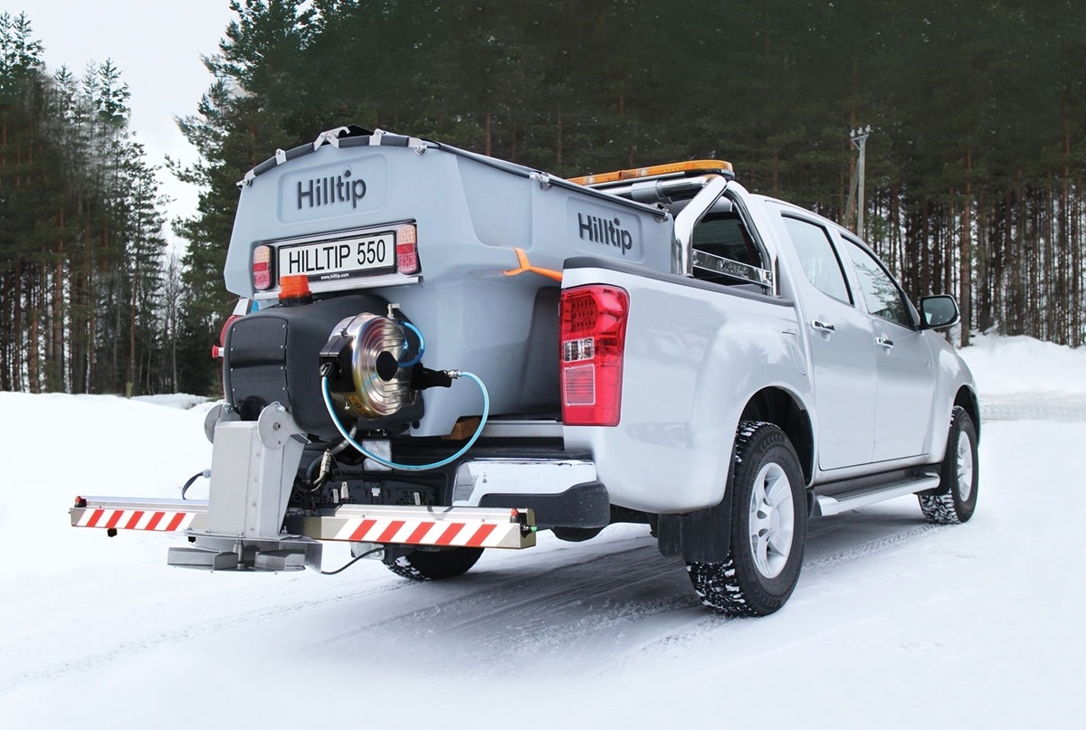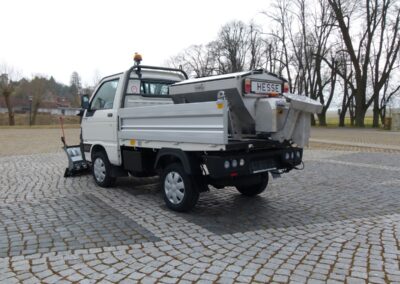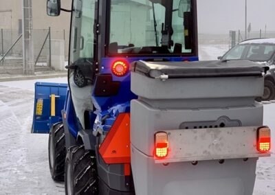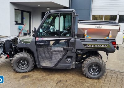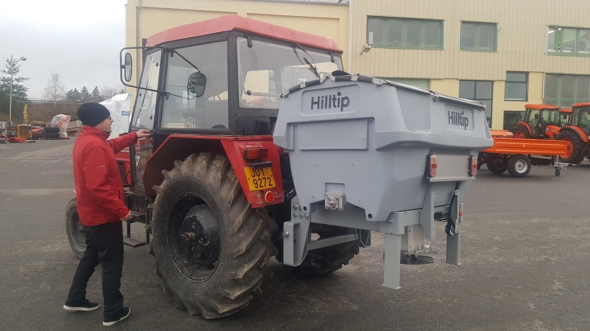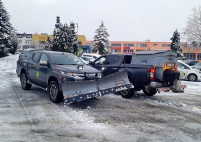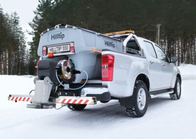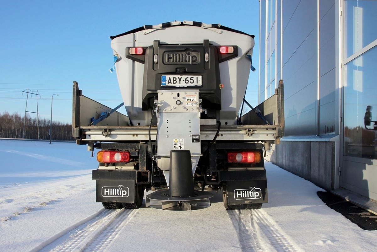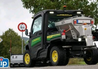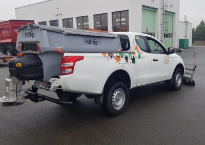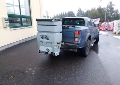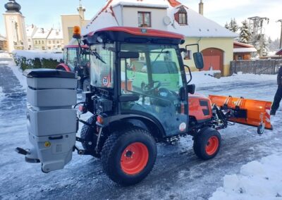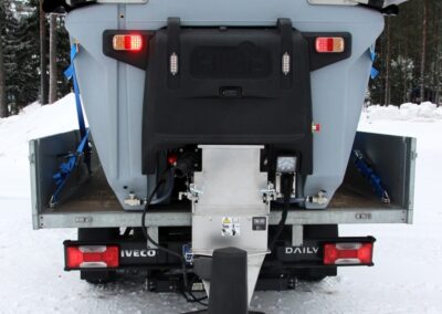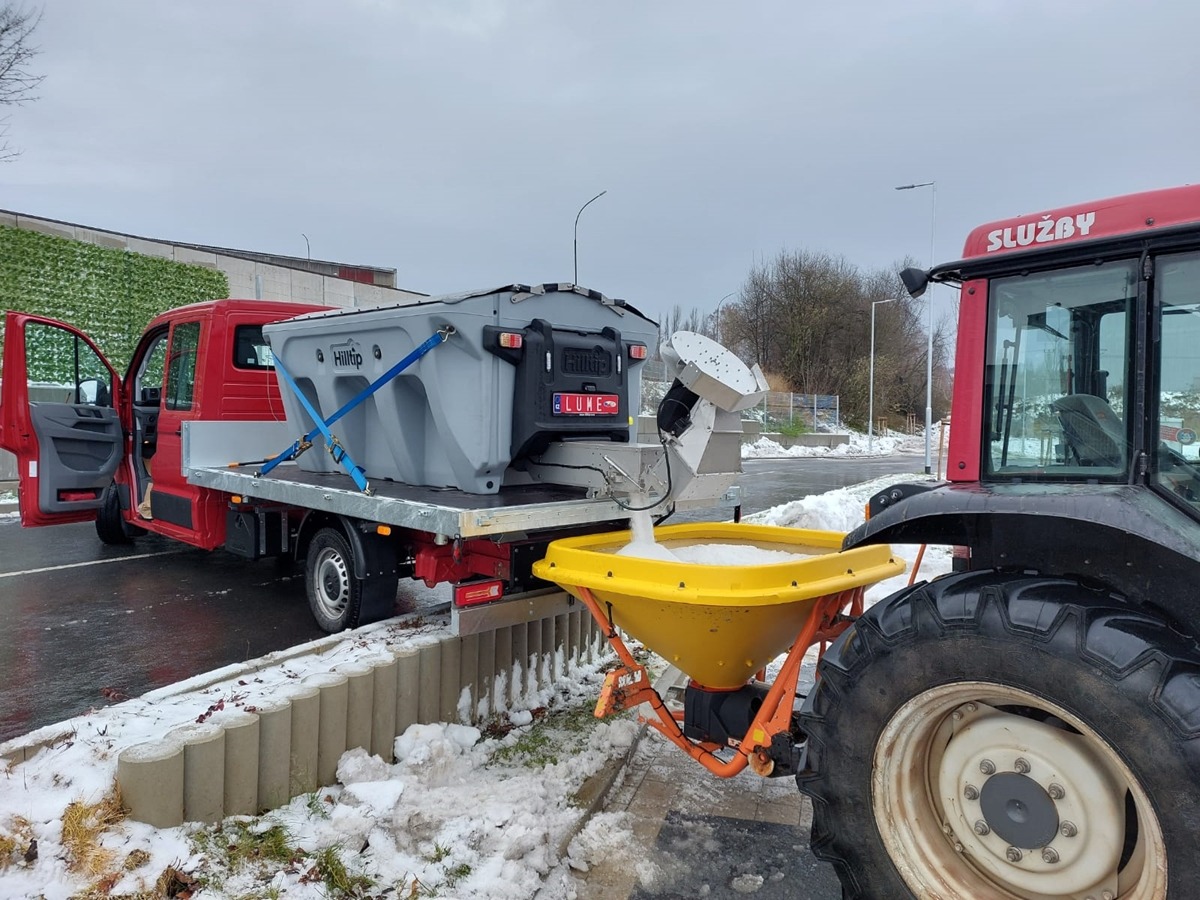 Plastové elektrické rozmetadlo s objemem 550-1100 litrů. GPS – automatická dávka posypu dle rychlosti pojezdu. Velmi efektivní sypání – značná úspora soli!