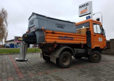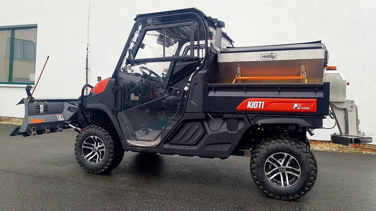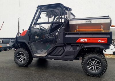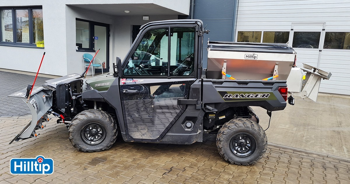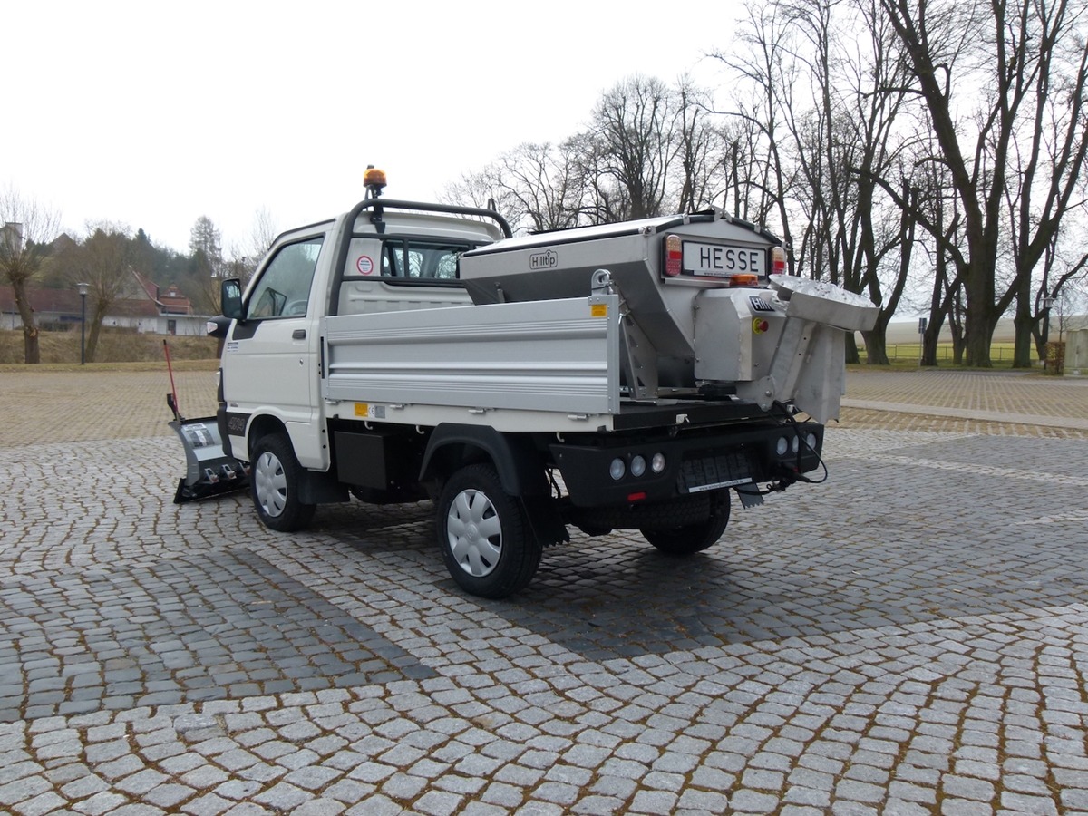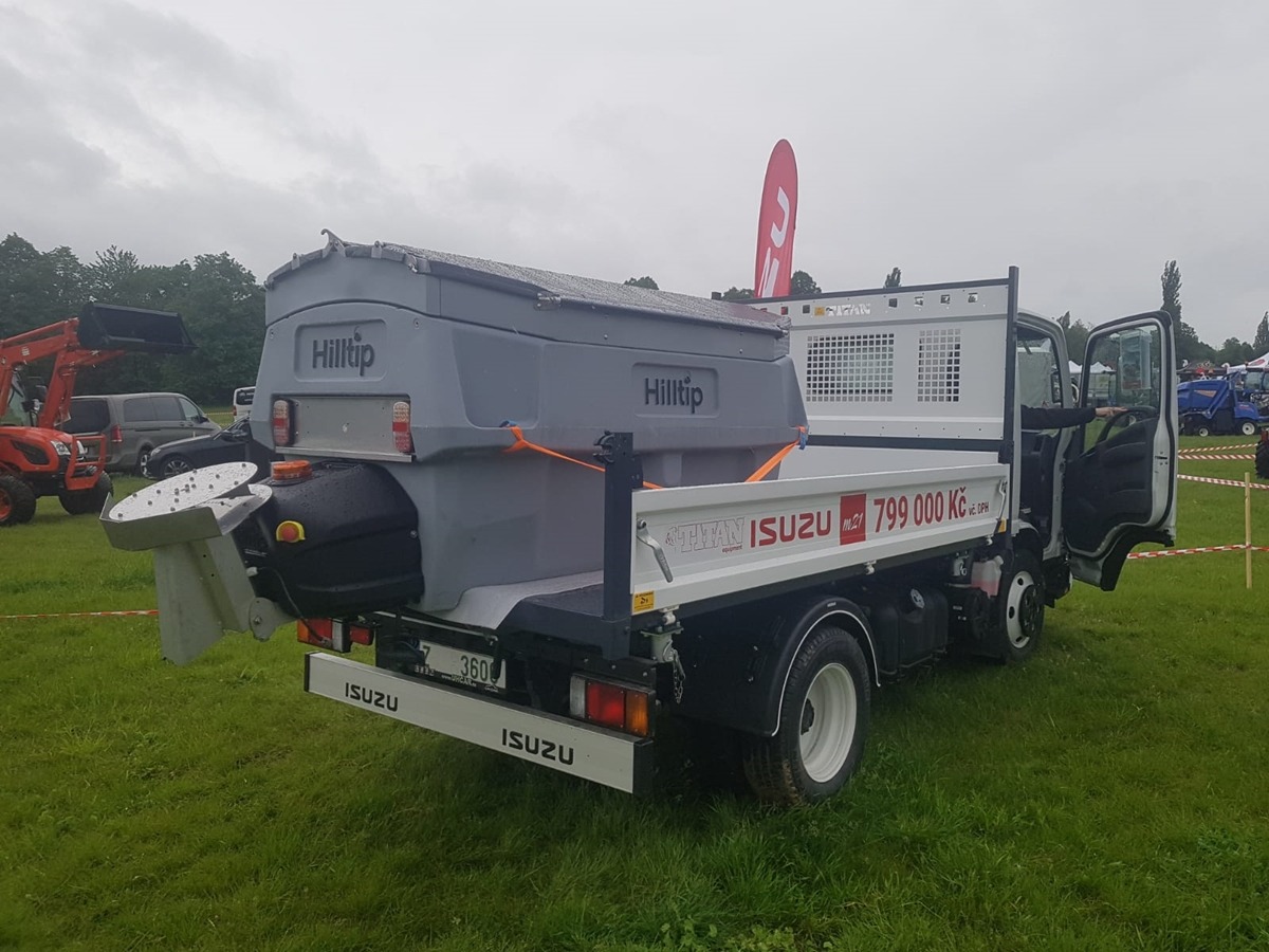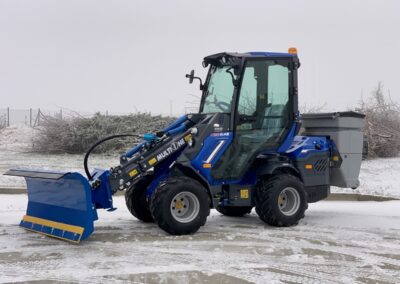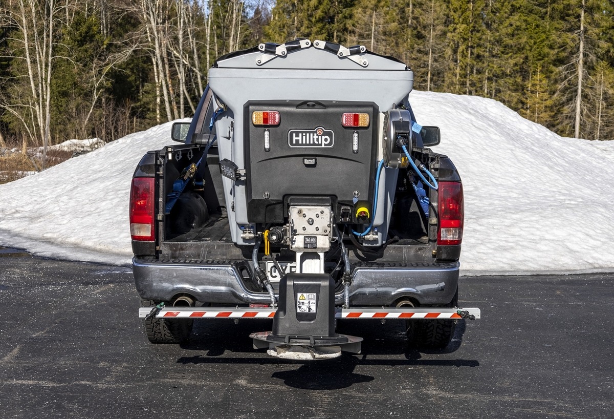 Plastové elektrické rozmetadlo s objemem 550-1100 litrů. GPS – automatická dávka posypu dle rychlosti pojezdu. Velmi efektivní sypání – značná úspora soli!