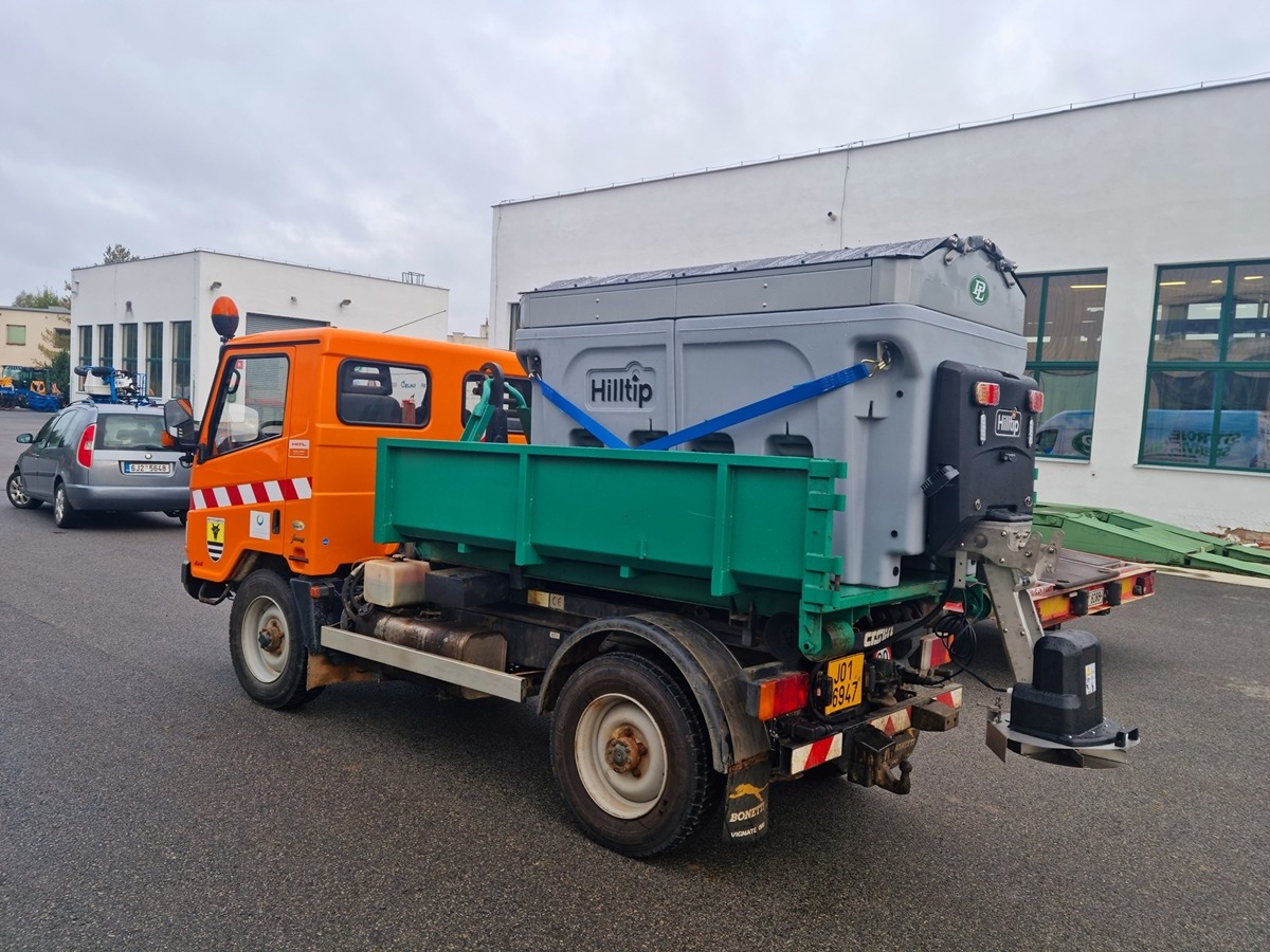 ✔ Dvojdílná krycí plachta s lankovým otevíráním zabraňuje znečištění ložné plochy vozidla posypovým materiálem.