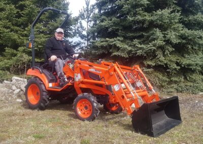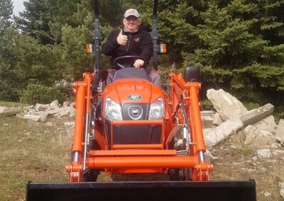 - Standardní výbava: Joystick, nastavitelný volant, loketní opěrka, držák nápojů, krabice na nářadí, tažná lišta