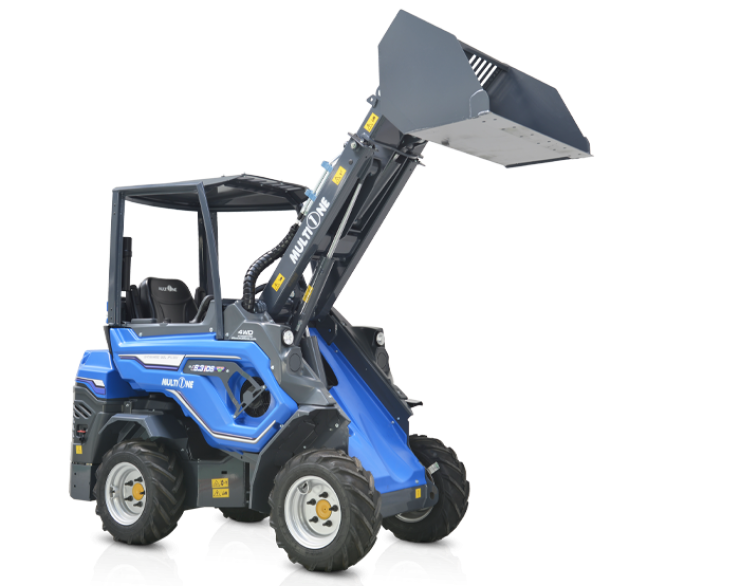 Nakladač Multione 1.1 je nejmenším z rodiny Multione. Výborně se hodí pro práci ve velmi omezených prostorech díky nulovému poloměru otáčení.